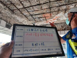 1.刨除劣質混凝土 | 2.鋼筋鏽蝕處鋼刷除鏽 |
